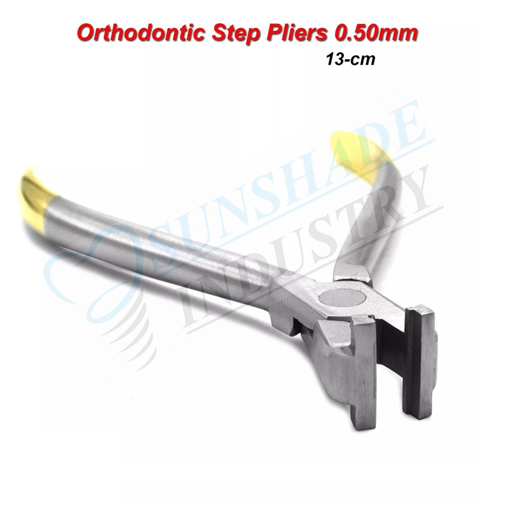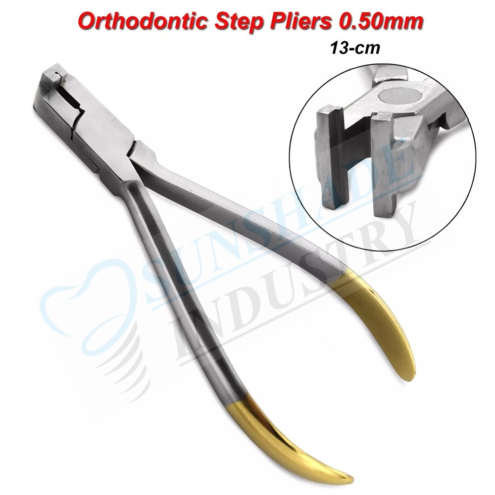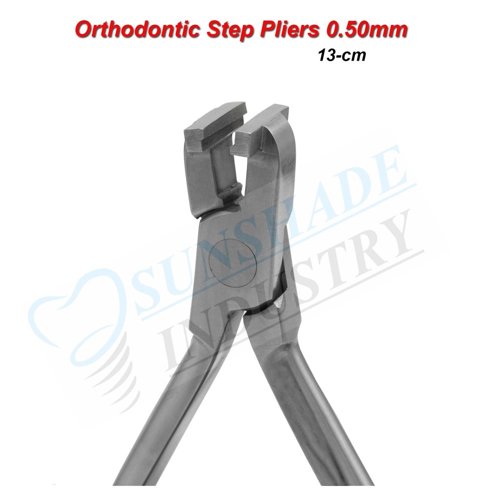 The Sunshade Industry Step Pliers (0.50 mm) are designed for dental professionals who demand precise control and reliability in orthodontic wire shaping. With its finely calibrated tip, ergonomic handling, and durable stainless steel construction, these pliers offer dependable performance for delicate wire detailing and bending tasks.