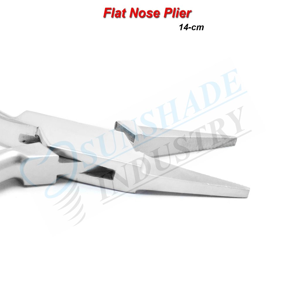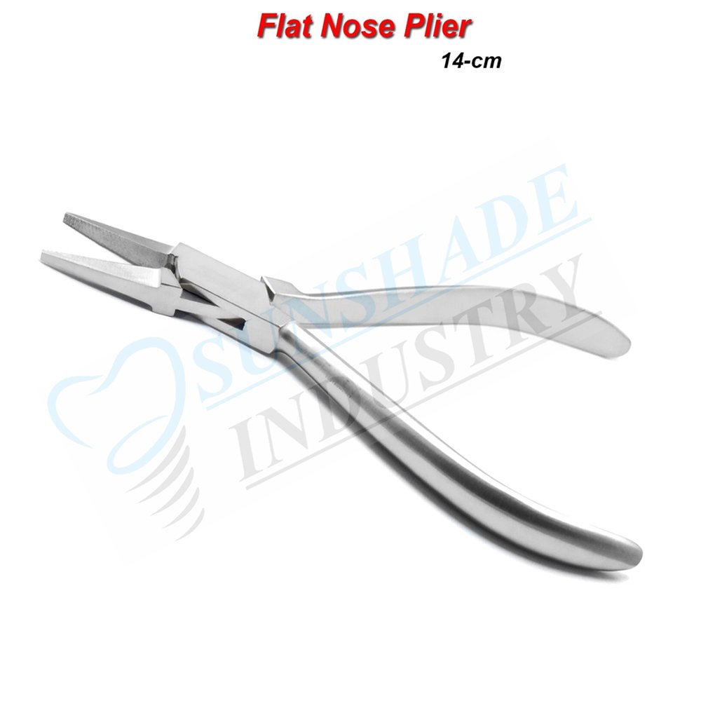 The Sunshade Industry Orthodontic Flat Nose Plier is a precision dental instrument designed for wire bending, forming, and manipulation in orthodontic applications. This tool is ideal for adjusting archwires, forming flat bends, and precisely positioning braces wires during clinical procedures.