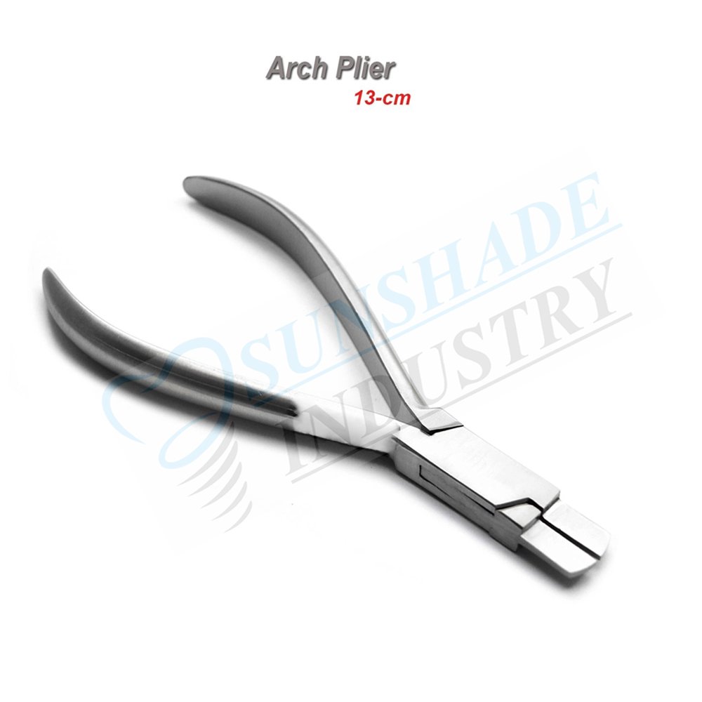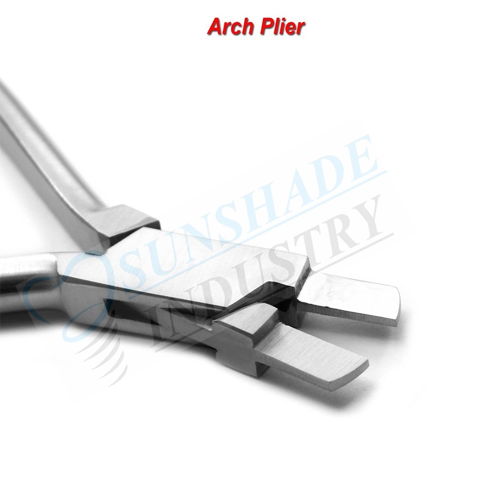 The Sunshade Industry Orthodontic Arch Forming & Bending Wire Pliers are precision dental instruments designed for bending, shaping, and forming orthodontic archwires during clinical and laboratory use. These pliers are ideal for creating accurate arch shapes and detailed wire adjustments, improving the efficiency and precision of orthodontic procedures.