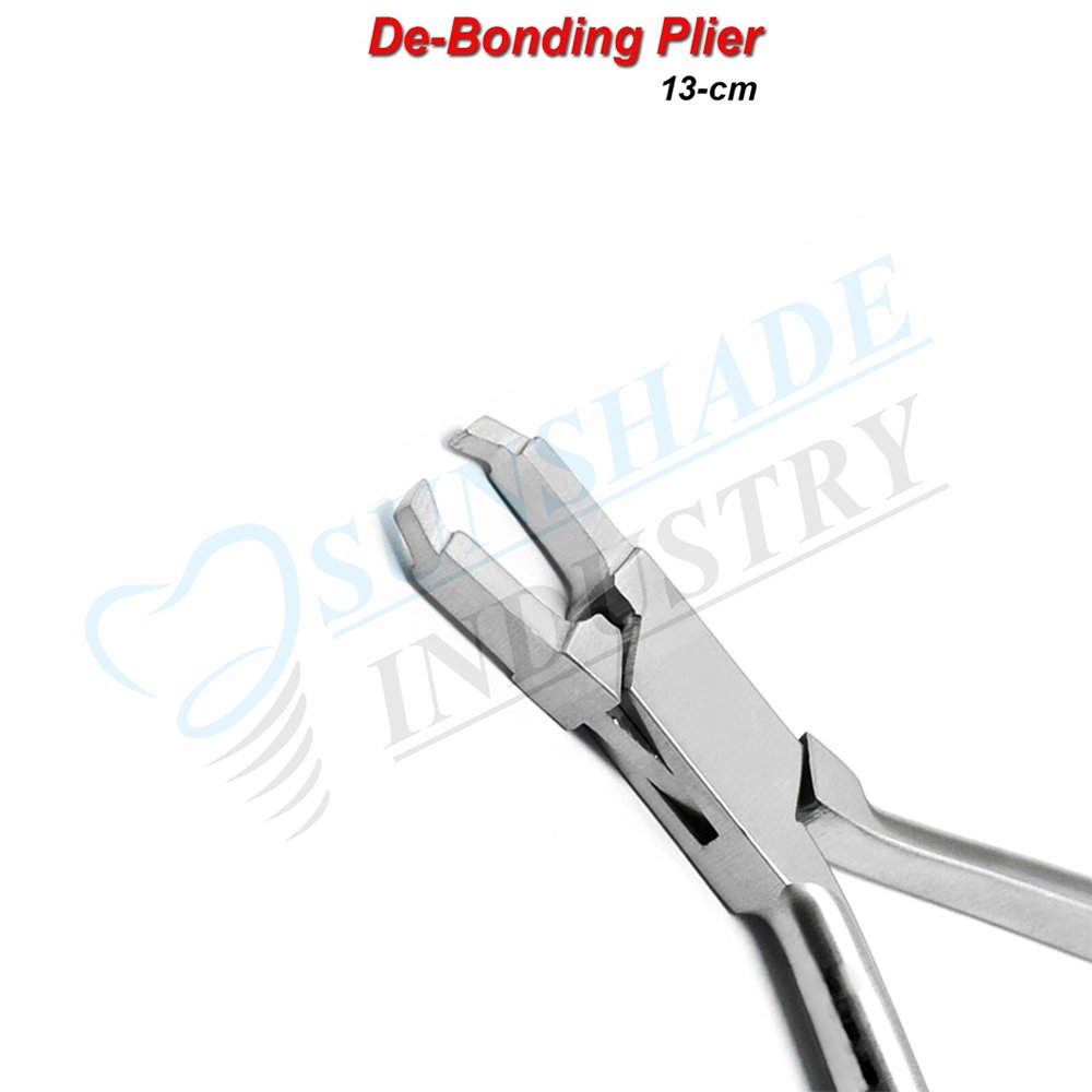 The Sunshade Industry Orthodontic Bracket Remover Pliers are professional dental instruments designed for the safe and efficient removal of orthodontic brackets from teeth during treatment adjustments or at the end of orthodontic care. These pliers offer secure grip and controlled handling for removing bonded brackets without damaging tooth enamel or surrounding tissue.