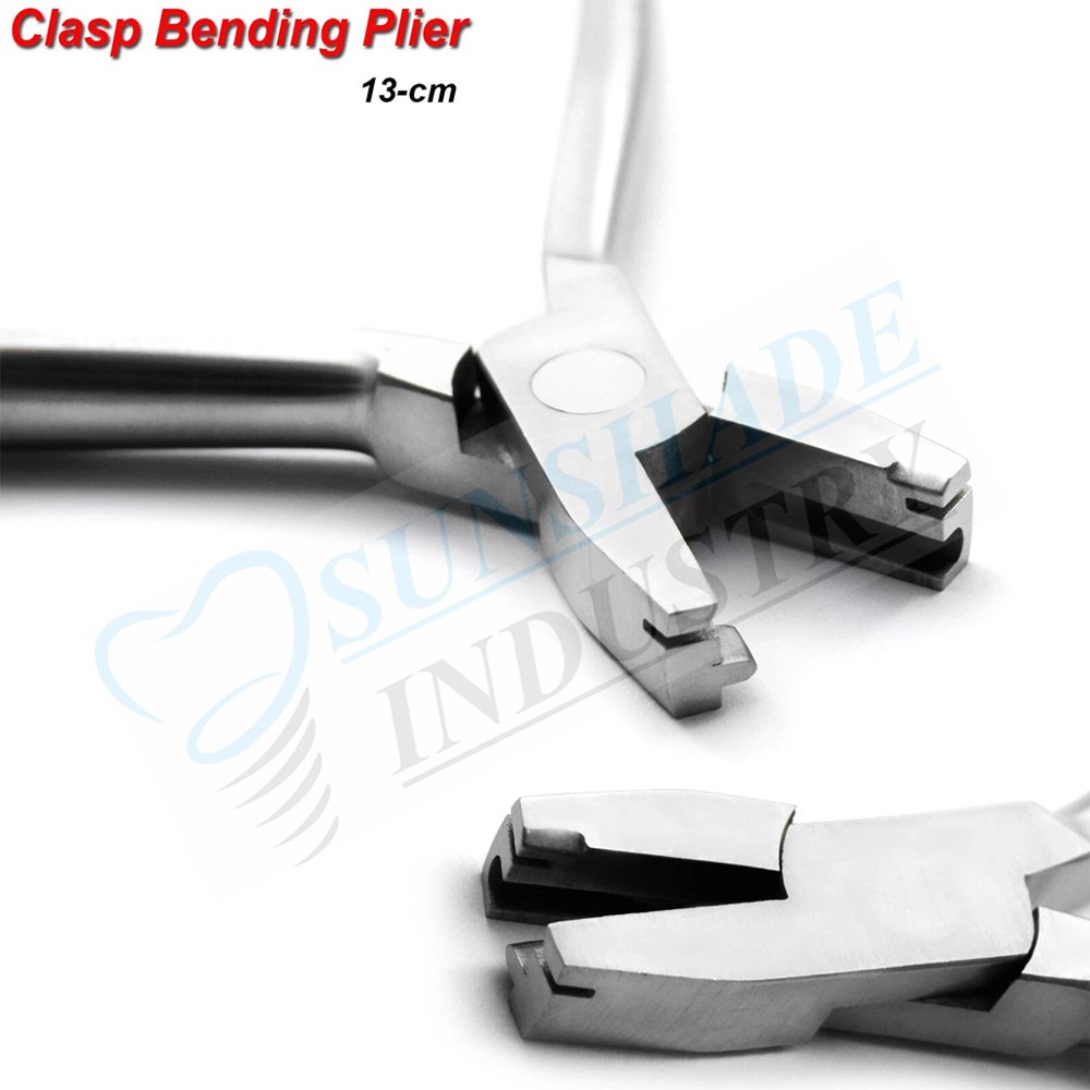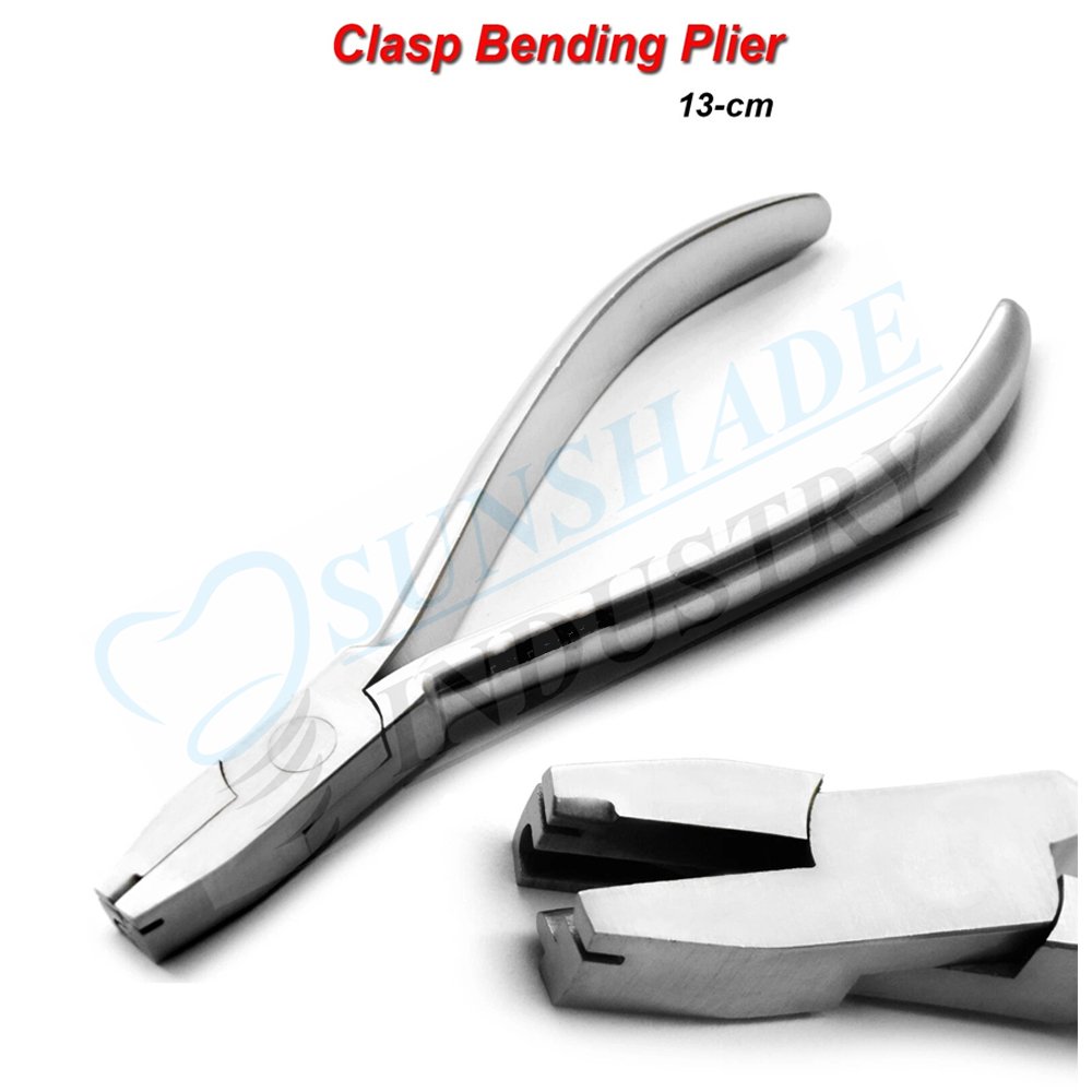 The Sunshade Industry Orthodontic Clasp Bending Pliers are precision dental instruments designed for bending, adjusting, and placing orthodontic clasps and wires. These pliers are commonly used by orthodontists and dental professionals for shaping wires and clasps with accuracy and control during clinical procedures or laboratory work.