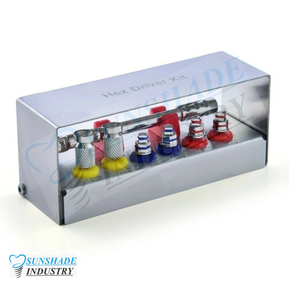 The Sunshade Industry Dental Implant Hex Driver Kit is a precision-engineered surgical instrument set designed to provide reliable torque control and accuracy during dental implant procedures. This complete kit includes ratchet and hand drivers in multiple hex sizes, ensuring compatibility with a wide range of implant systems.